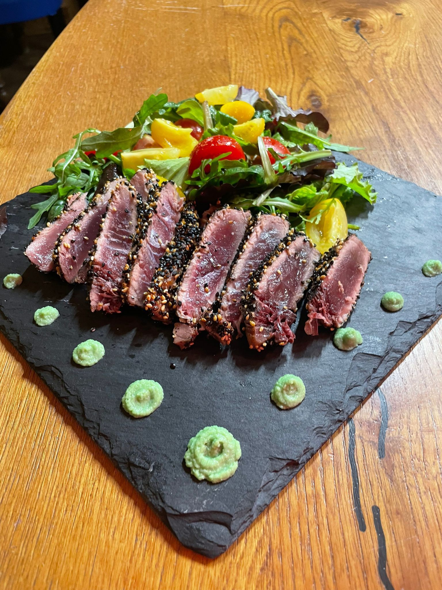 Il menù è variegato e propone piatti sempre diversi, a seconda delle disponibilità di stagione e della creatività dello chef, di seguito solo alcuni dei piatti proposti, esempio di raffinatezza ma soprattutto di gusto unico, da accompagnare con vini tipici del territorio, nazionali ed esteri.